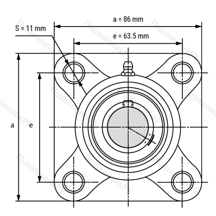 - Фланцевый подшипник с 4 отверстиями позволяет устанавливать его в различных условиях и подходит для очень высоких радиальных нагрузок