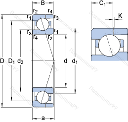 | Номинальная статическая грузоподъёмность | C0 | 4.75 | kN | |
